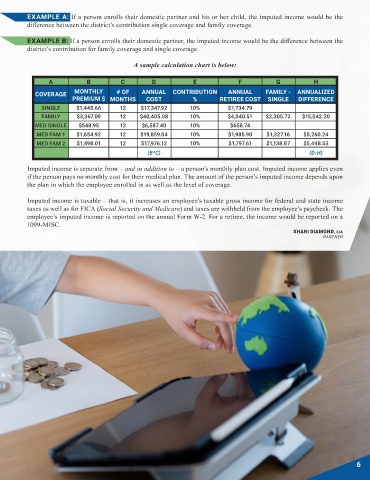 IMPUTED INCOME CALCULATION EXAMPLE B: If a person enrolls their domestic partner, the imputed income would be the difference between the