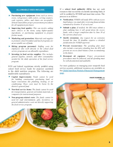 STIRRING UP A ALLOWABLE USES INCLUDE: If a school food authority (SFA) has net cash