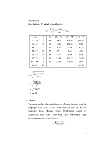 simpangan baku. Nilai varians dapat diperoleh dari nilai kuadrat