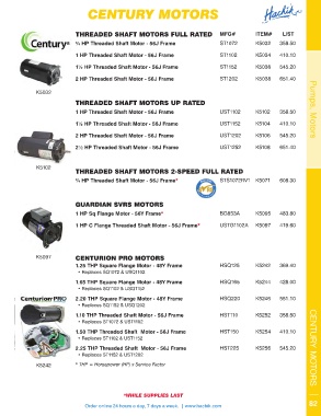 THREADED SHAFT MOTORS FULL RATED MFG# ITEM# LIST