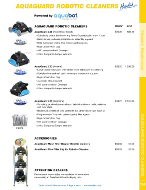 AQUAGUARD ROBOTIC CLEANERS ITEM# LIST