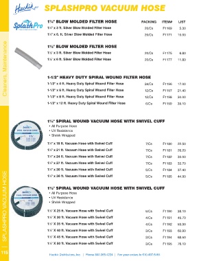 Cleaners, Maintenance 1½" x 3 ft. Silver Blow Molded Filter Hose 20/Cs F1175 11.80