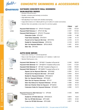 L1041 Hayward Wall Skimmer 2" - SP1082RC Threaded w/Round lid L1928 176.50