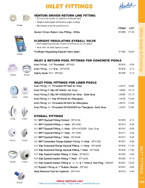 N1009      N1020     1½" Slip Eyeball Insider Fitting w/ ½", ¾" & 1" Hole & Test Plug - 542002  N1021  13.00  INLET FITTINGS