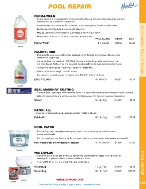 • 1 Lb. will fill 17 cu. in., or a crack 3/4 x 3/4 x 30 inches. POOL REPAIR