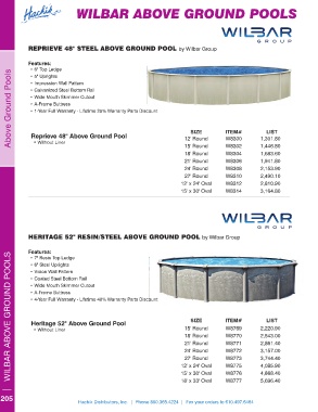 Heritage 52" Above Ground Pool SIZE ITEM# LIST