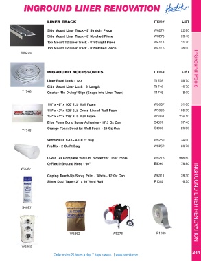 INGROUND ACCESSORIES ITEM# LIST InGround Pools