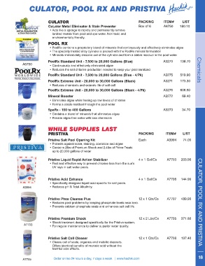 • Reduces pool problems by keeping phosphate levels near zero. CULATOR, POOL RX AND PRISTIVA