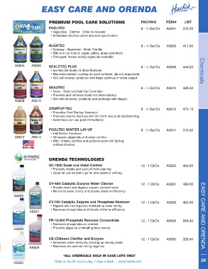 PREMIUM POOL CARE SOLUTIONS PACKING ITEM# LIST