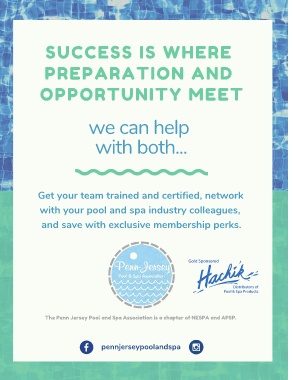 The Penn Jersey Pool and Spa Association is a chapter of NESPA and APSP.