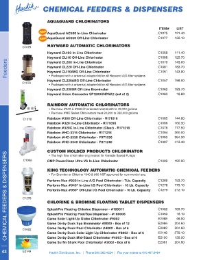 Feeders Hayward CL220 Off-Line Chlorinator C1081 183.70