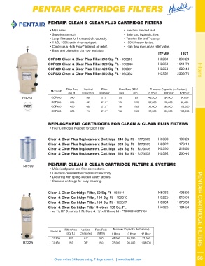 PENTAIR CLEAN & CLEAR CARTRIDGE FILTERS & SYSTEMS