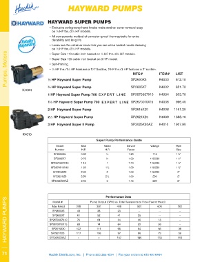 Pumps, Motors            ½ HP Hayward Super Pump                             MFG#            ITEM#     LIST