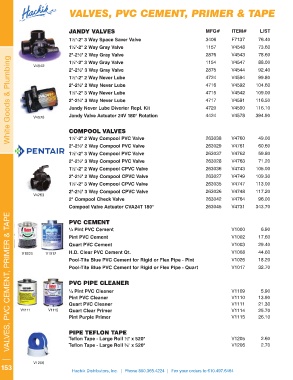 VALVES, PVC CEMENT, PRIMER & TAPE