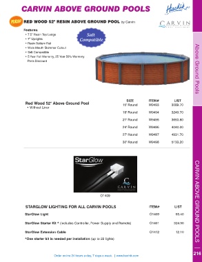 STARGLOW LIGHTING FOR ALL CARVIN POOLS ITEM# LIST CARVIN ABOVE GROUND POOLS