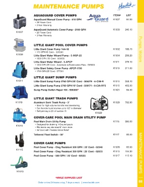 AQUAGUARD COVER PUMPS                                              ITEM#      LIST