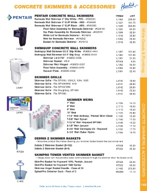 PENTAIR CONCRETE WALL SKIMMERS ITEM# LIST