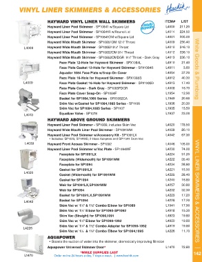 HAYWARD VINYL LINER WALL SKIMMERS ITEM# LIST