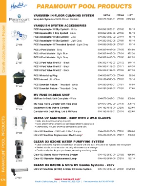 VANQUISH IN-FLOOR CLEANING SYSTEM MFG# ITEM# LIST