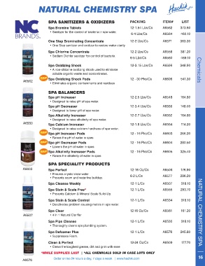 SPA SANITIZERS & OXIDIZERS PACKING ITEM# LIST