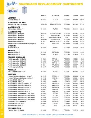 UNICEL PLEATCO FILBUR ITEM# LIST
