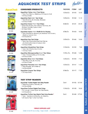 B1402 AquaChek Monopersulfate 3-in-1 Test Strips 12 Bts./Cs. B1446 14.90