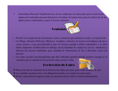 o Permite la recopilación de documentos, leyes, sentencias que permiten acceder a la legislación.