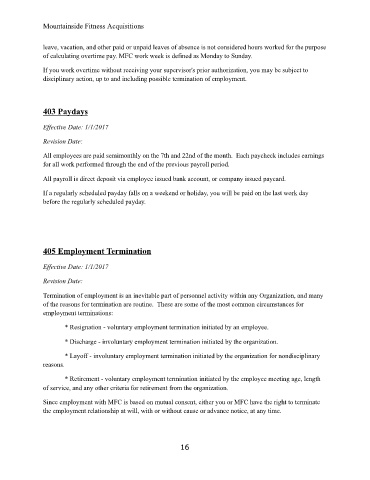 of calculating overtime pay. MFC work week is defined as Monday to Sunday.