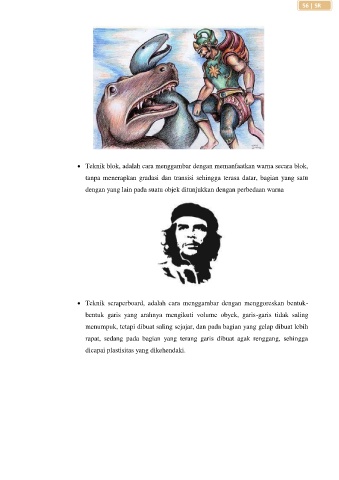 • Teknik scraperboard, adalah cara menggambar dengan menggoreskan bentuk-