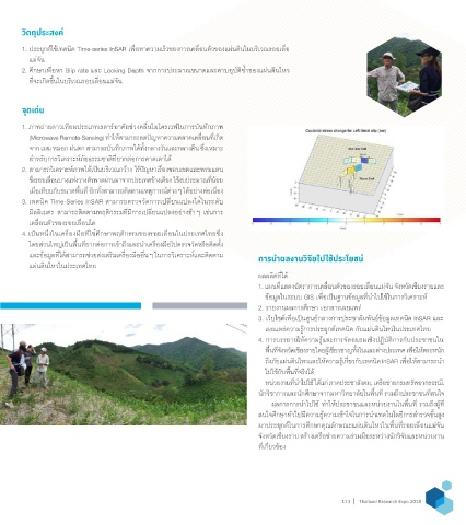 และข้อมูลที่ได้สามารถช่วยส่งเสริมเครื่องมืออื่นๆ ในการวิเคราะห์และติดตาม การนำาผลงานวิจัยไปใช้ประโยชน์