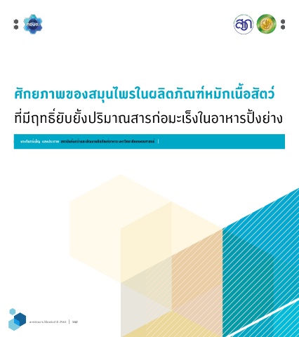 ศักยภาพของสมุนไพรในผลิตภัณฑ์หมักเนื้อสัตว์ ที่มีฤทธิ์ยับยั้งปริม�ณส�รก่อมะเร็งในอ�ห�รปิ้งย่�ง นางจันทร์เพ็ญ แสงประกาย สถาบันค้นคว้าและพัฒนาผลิตภัณฑ์อาหาร มหาวิทยาลัยเกษตรศาสตร์ | มหกรรมง�นวิจัยแห่งช�ติ 2561 | 142