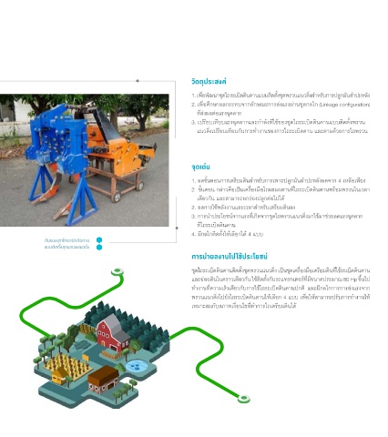 ไถพรวน และไถยกร่อง ซึ่งทำาให้เสียทั้งค่าใช้จ่ายที่สูงและเวลาดำาเนินการนาน การลดค่าใช้จ่ายและเวลาในการ 1. เพื่อพัฒนาชุดไถระเบิดดินดานแบบติดตั้งชุดพรวนแนวดิ่งสำาหรับการปลูกมันสำาปะหลัง