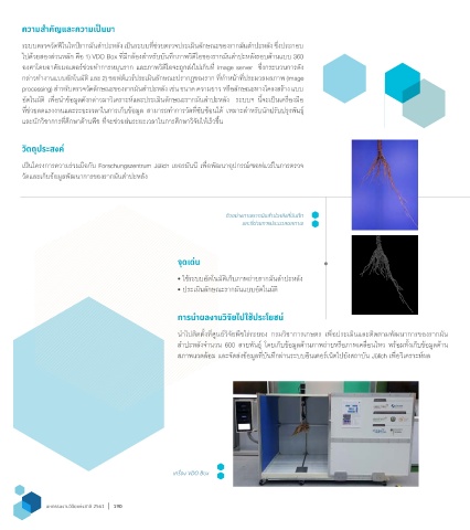 กล่าวทำางานแบบอัตโนมัติ และ 2) ซอฟต์แวร์ประเมินลักษณะปรากฏของราก ที่ทำาหน้าที่ประมวลผลภาพ (image