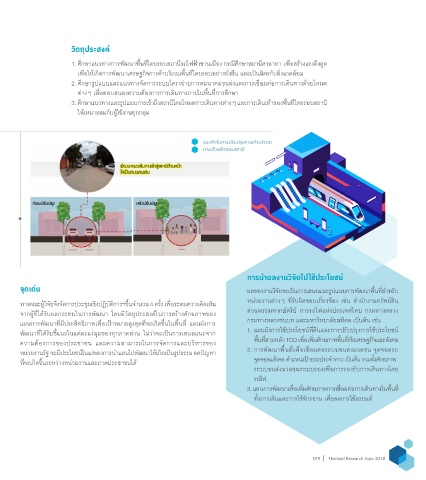 โดยผลของงานวิจัยจะเป็นการเสนอแนะรูปแบบการพัฒนาพื้นที่สำาหรับหน่วยงานต่างๆ ที่รับผิดชอบเกี่ยวข้อง 3. แผนการพัฒนาเพื่อเพิ่มศักยภาพการเชื่อมต่อการเดินทางในพื้นที่