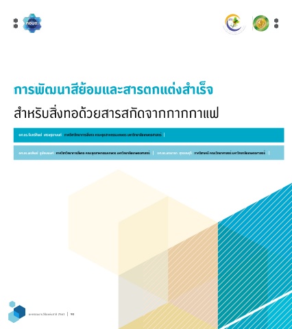 ผศ.ดร.พรทิพย์ ธูปถมพงศ์ ภาควิชาวิทยาการสิ่งทอ คณะอุตสาหกรรมเกษตร มหาวิทยาลัยเกษตรศาสตร์ | ผศ.ดร.พจนารถ สุวรรณรุจิี ภาควิชาเคมี คณะวิทยาศาสตร์ มหาวิทยาลัยเกษตรศาสตร์ |