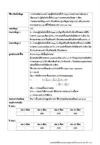 พิจารณาคาของ eGFR ตั้งแตยอนหลัง 1ปงบประมาณและมีคาเฉลี่ยการเปลี่ยนแปลง < 5