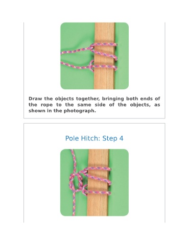 Draw the objects together, bringing both ends of the rope to the same side of the objects, as shown in the photograph. Pole Hitch: Step 4