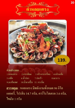 สรรพคุณ : หอยแครง มีพลังงานทั้งหมด 86 กิโล