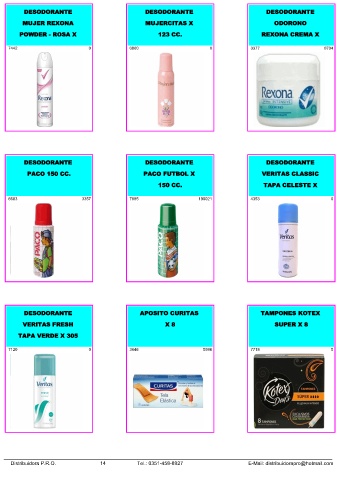Distribuidora P.R.O. 14 Tel.: 0351-458-8927 E-Mail: distribuidorapro@hotmail.com