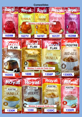 Comestibles Minimo 3 unid.de Cada Uno 1659M 1627V 1678T 1612Y 1629M POSTRE FLAN FLAN FLAN Minimo 3 unid.de Cada Uno 1635G 1699 1358P 1330DL POSTRE POSTRE POSTRE POSTRE Minimo 3 unid.de Cada Uno 1330K 1330 1330C 1330R