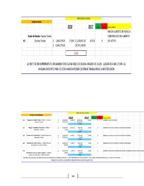 # 14 -$ 253,423.00 -3.28% $ 30,741.00 0.40% X AUMENTO EN GASTOS DE OPERACIÓN DEL 30% Y AUMENTO DE SOLO EL 19% EN VENTAS