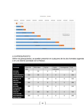 Definir los presupuestos, se pueden presentar en cualquiera de los dos formatos sugeridos