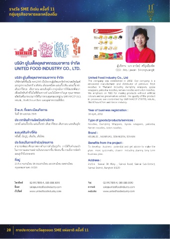 UNITED FOOD INDUSTRY CO., LTD. CEO : Mrs. Lawan Srirongruangjit