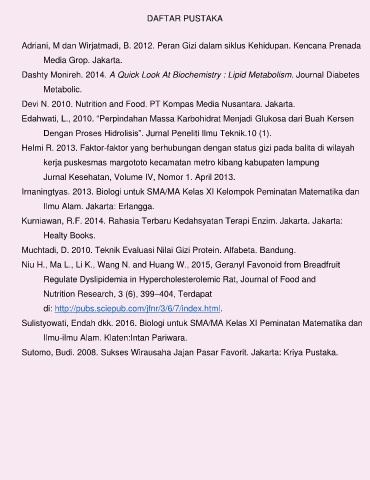 Devi N. 2010. Nutrition and Food. PT Kompas Media Nusantara. Jakarta.