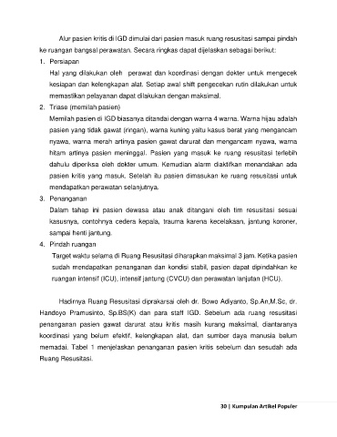 Alur pasien kritis di IGD dimulai dari pasien masuk ruang resusitasi sampai pindah