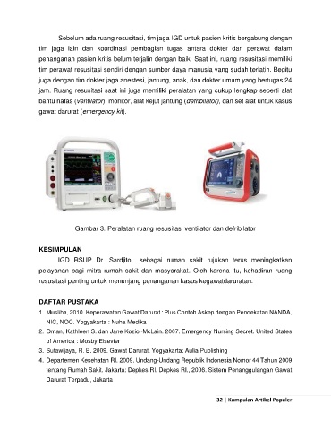 bantu nafas (ventilator), monitor, alat kejut jantung (defribilator), dan set alat untuk kasus
