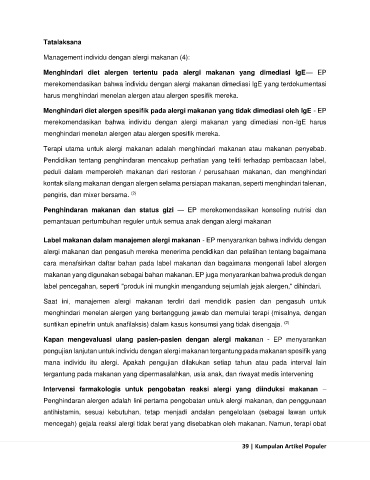 Menghindari diet alergen tertentu pada alergi makanan yang dimediasi IgE— EP