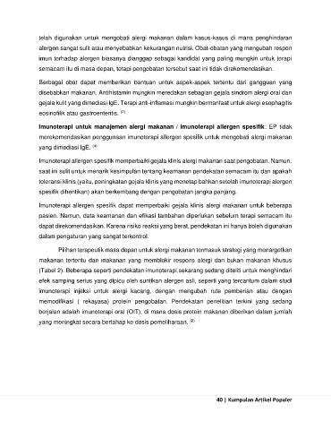 gejala kulit yang dimediasi IgE. Terapi anti-inflamasi mungkin bermanfaat untuk alergi esophagitis