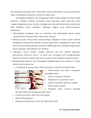 dan pelayanan yang lebih baik. Keberadaan komite keselamatan transfusi juga terbukti