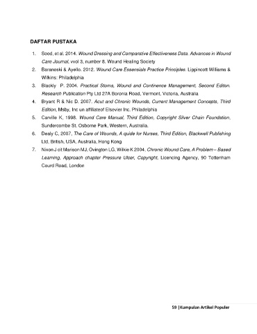 2. Baranoski & Ayello. 2012. Wound Care Essensials Practice Principles. Lippincott Williams &